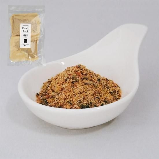 This dashi pack contains powdered natural ma-kombu from the prized Kurokuchi-hama region, rich bonito powder, and our signature “Special salt with dashi”.